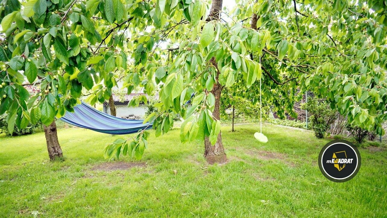 Ogród zagospodarowany, zadbany z wydzieloną przestrzenią pod uprawę warzyw.